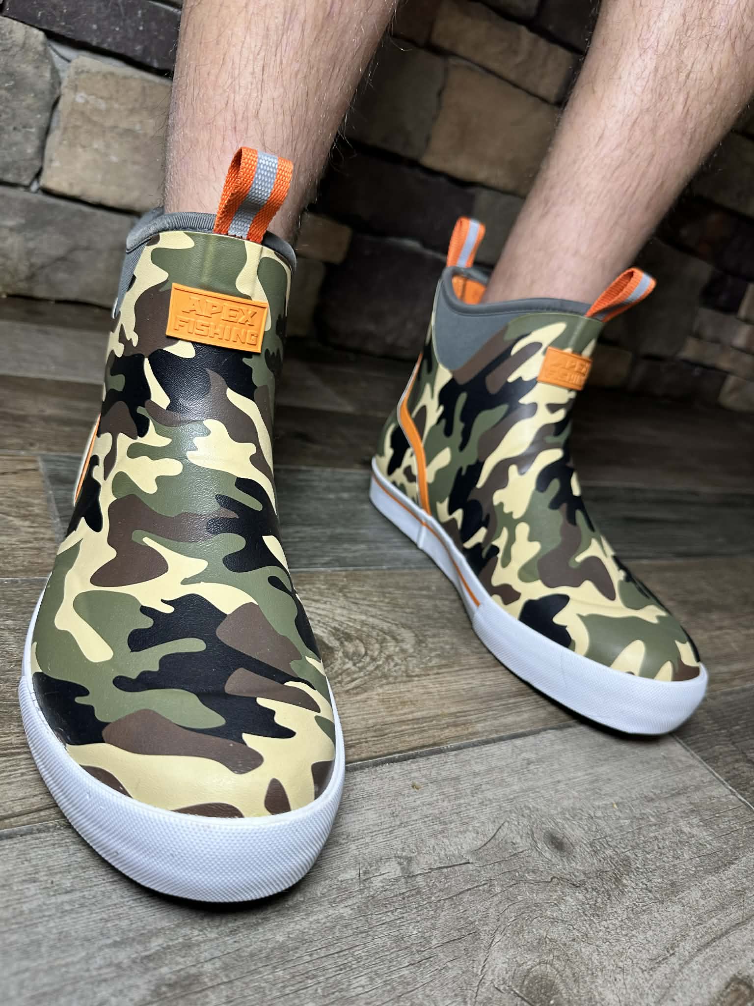 Engineered for serious anglers, these camo deck boots deliver the durability and grip you need when conditions get wet and unpredictable. The rugged camouflage design blends seamlessly with your fishing environment while the specialized sole provides superior traction on slippery boat surfaces. Built to withstand saltwater exposure and constant movement, they're an essential investment for anyone serious about their time on the water. Available for pre-order now.