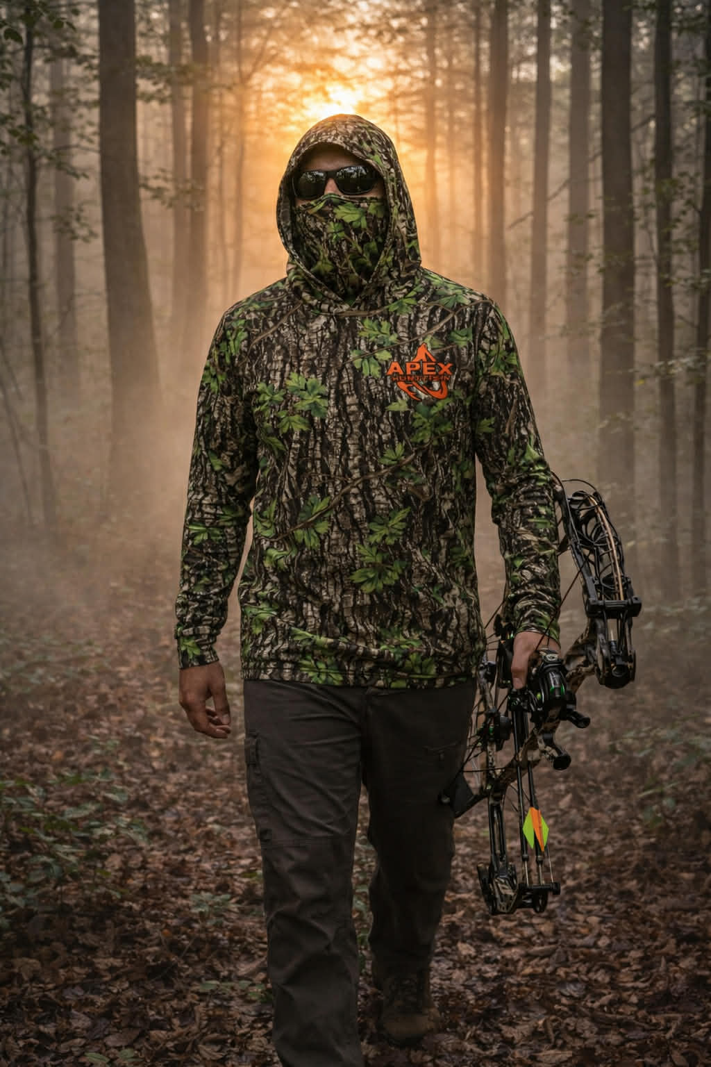 The Green Leafy Mask Hoodie is your go-to layer for hunting trips and days on the water. Built with UPF50 sun protection, it shields you from harmful rays during long hours outdoors. The integrated mask design provides concealment in the field while keeping you comfortable in any condition. Whether you're stalking game or enjoying waterside adventures, this versatile hoodie delivers the protection and coverage serious anglers and hunters demand.